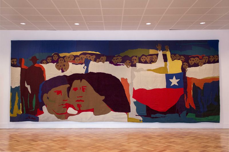 De este modo, entre el 6 de septiembre y el 5 de noviembre, la exposición reunirá 30 obras de la colección del MSSA “que se exhibieron en el Centro Cultural Gabriela Mistral en 1973 y dos obras textiles icónicas creadas en 1972 y que fueron parte del edificio de la Unctad III: el tapiz Multitud III de la artista Gracia Barrios y el mural de arpilleras realizado por las Bordadoras de Isla Negra”, acotan desde el GAM.