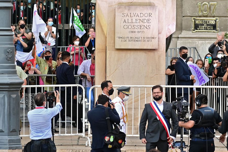 “Como pronosticara hace casi 50 años Salvador Allende, estamos de nuevo, compatriotas, abriendo las grandes alamedas por donde pase el hombre libre, el hombre y la mujer libre, para construir una sociedad mejor”, dijo Boric, utilizando el discurso de uno de sus referentes en la política chilena para cerrar sus primeras palabras después de asumir su cargo.