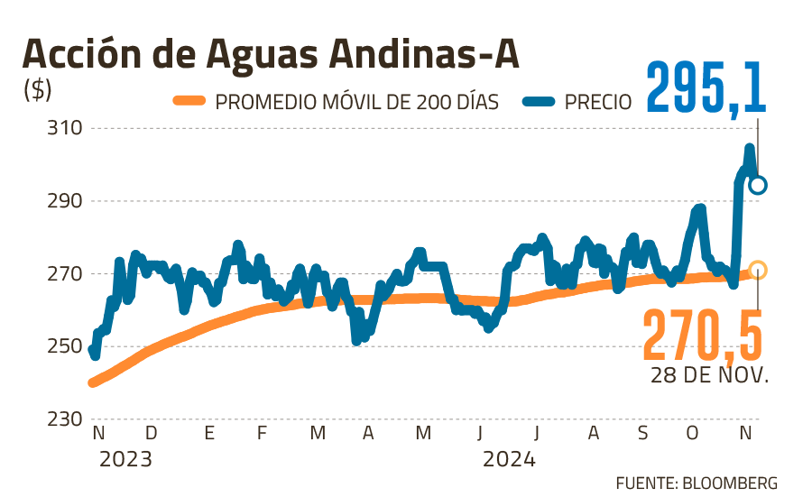¿Las razones? El acuerdo entre la empresa y la Superintendencia de Servicios Sanitarios para aumentar las tarifas del agua en Santiago y las lluvias invernales. “Si bien los resultados estuvieron por debajo de las expectativas, durante la misma semana la compañía anunció el resultado del nuevo ciclo tarifario 2025-2030, donde se aprobaron aumentos de tarifas del 3% en marzo de 2025 y del 1% en diciembre de 2025 y marzo. 2026 respectivamente”, señala un informe de BICE Inversiones.