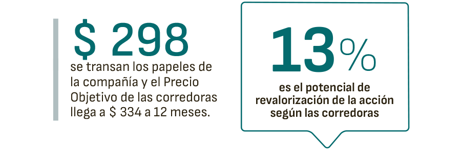Las nuevas tarifas no sólo han dado un impulso al precio actual de las acciones, sino también a sus perspectivas a medio plazo. El precio actual se sitúa en 298 dólares, mientras que el precio objetivo medio de las corredurías que siguen al periódico alcanza los 334 dólares en 12 meses, lo que supone un potencial de revalorización de casi el 13%.