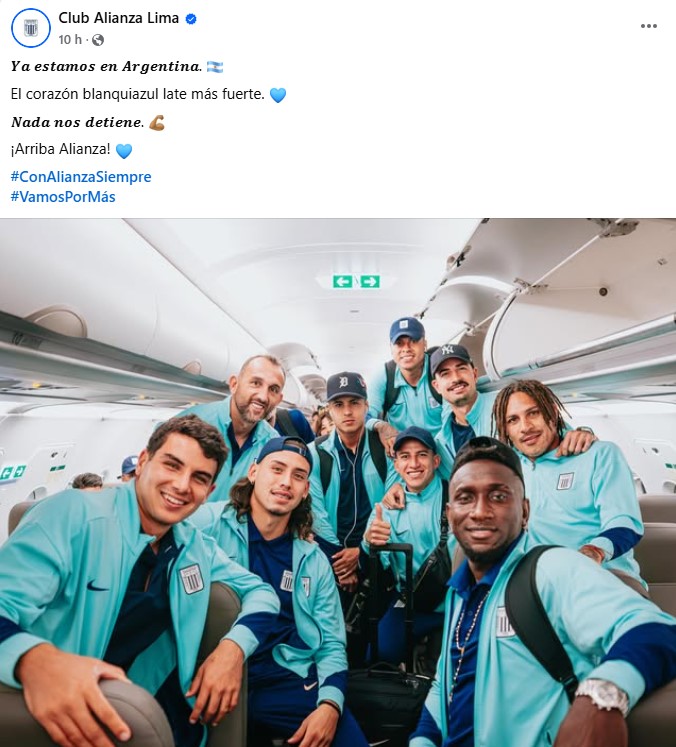 “Ya estamos en Argentina. El corazón azul y más fuerte de Bluezul nos detiene”. Nos detiene “, fue el breve mensaje de la Alianza acompañado de una foto donde jugadores como Hernán Barco, Paolo Guerrero, Fernando Gaibor, Guillermo Viscarra, entre otros.