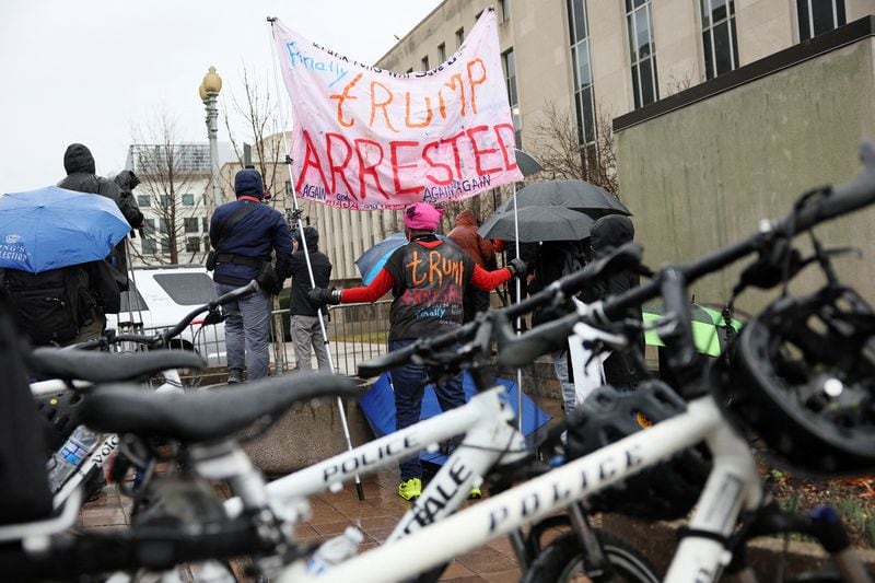 Un manifestante anti-Trump sostiene un cartel el día de una audiencia en el Tribunal de Distrito de Estados Unidos en Washington. Foto: Reuters