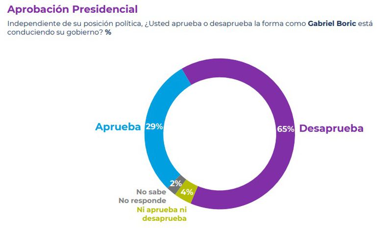 En otro momento, la encuesta de opinión reveló una aumento de dos puntos porcentuales en la aprobación de la gestión del presidente, alcanzando el 29%. Asimismo, la desaprobación bajó dos puntos, alcanzando el 65%.
