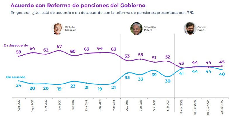Sobre reforma de pensionesla encuesta de opinión semanal mostró que el 40% está de acuerdo y el 45% en desacuerdo con esta iniciativa presentada por el gobierno.