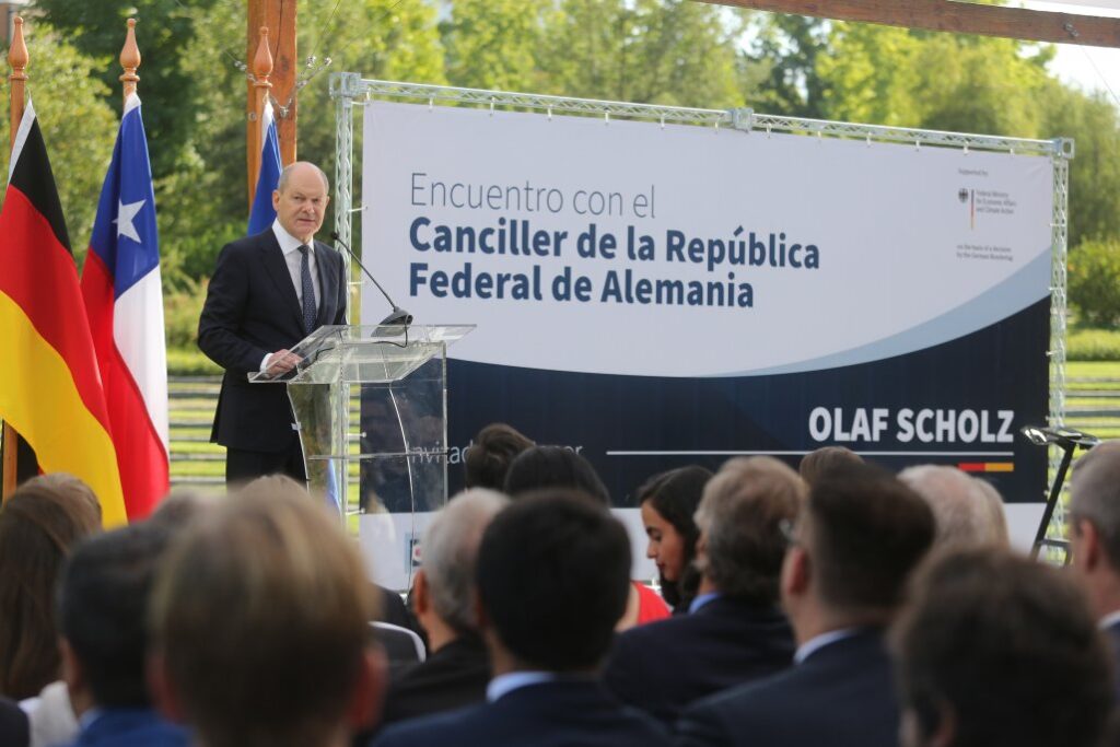 El canciller alemán, Olaf Scholz, dijo en un encuentro con empresarios chilenos y alemanes que “Chile sigue siendo un socio comercial deseado” para Alemania y destacó oportunidades de negocios en energías limpias como el litio y el hidrógeno verde.