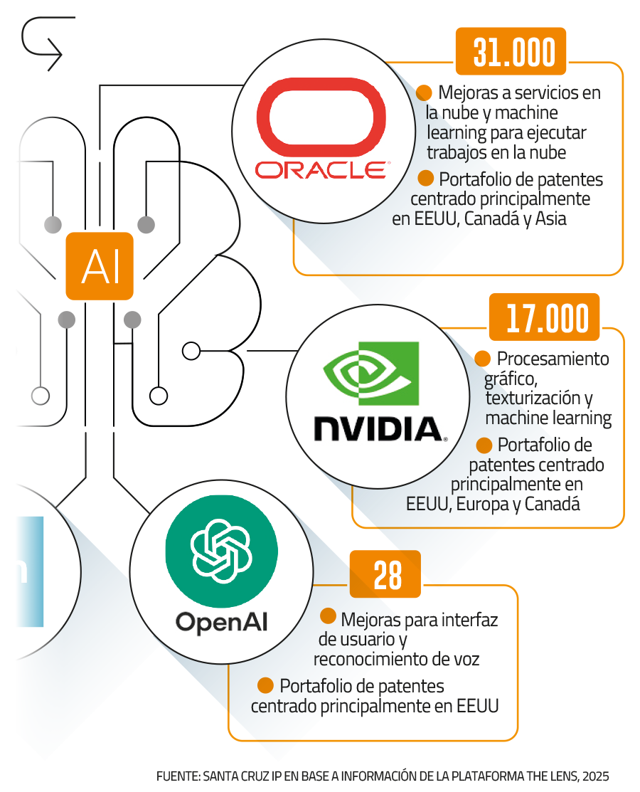En el marco de un informe de patentes realizado por el estudio especializado en propiedad intelectual, Santa Cruz IP, con información sobre la plataforma de lente, que muestra la cantidad y los tipos de patentes sobresalientes que tienen los cinco socios tecnológicos de Stargate (ver infografía), el La socia de estudio, Catalina Olivos, dijo que la colaboración entre las empresas generará una aceleración en la presentación de nuevas patentes y desarrollos, en áreas de optimización de hardware, mejoras en la nube e interacción avanzada con IA.