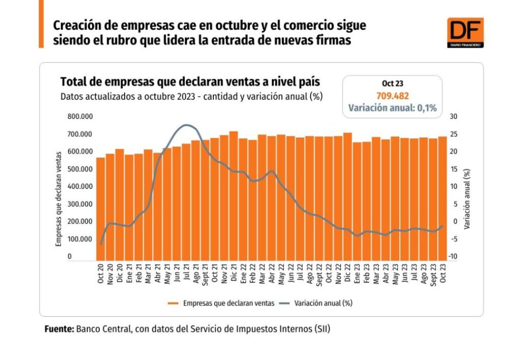 A su vez, las empresas que declaran ventas aumentaron un 0,1% en 12 meses con un total de 709.482 firmas.