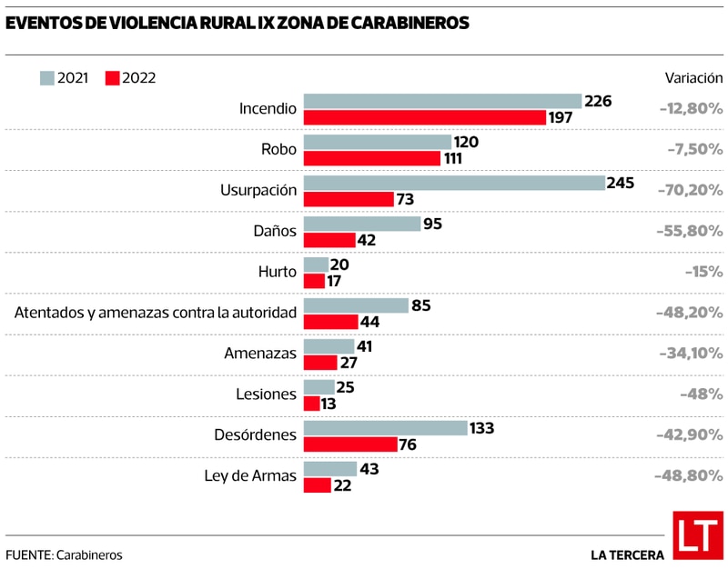#Delitos #violencia #rural #disminuyeron #más #durante #Araucanía #usurpaciones #son #las #más #bajan