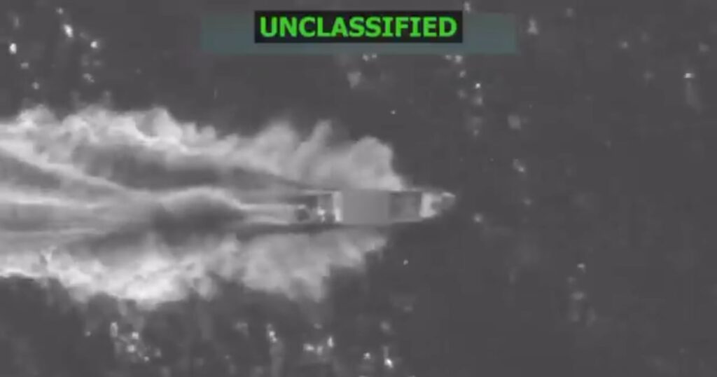 Hegseth compartió el Vídeo de 26 segundos del impacto.que muestra el barco navegando por el agua y siendo golpeado, rápidamente envuelto en llamas.