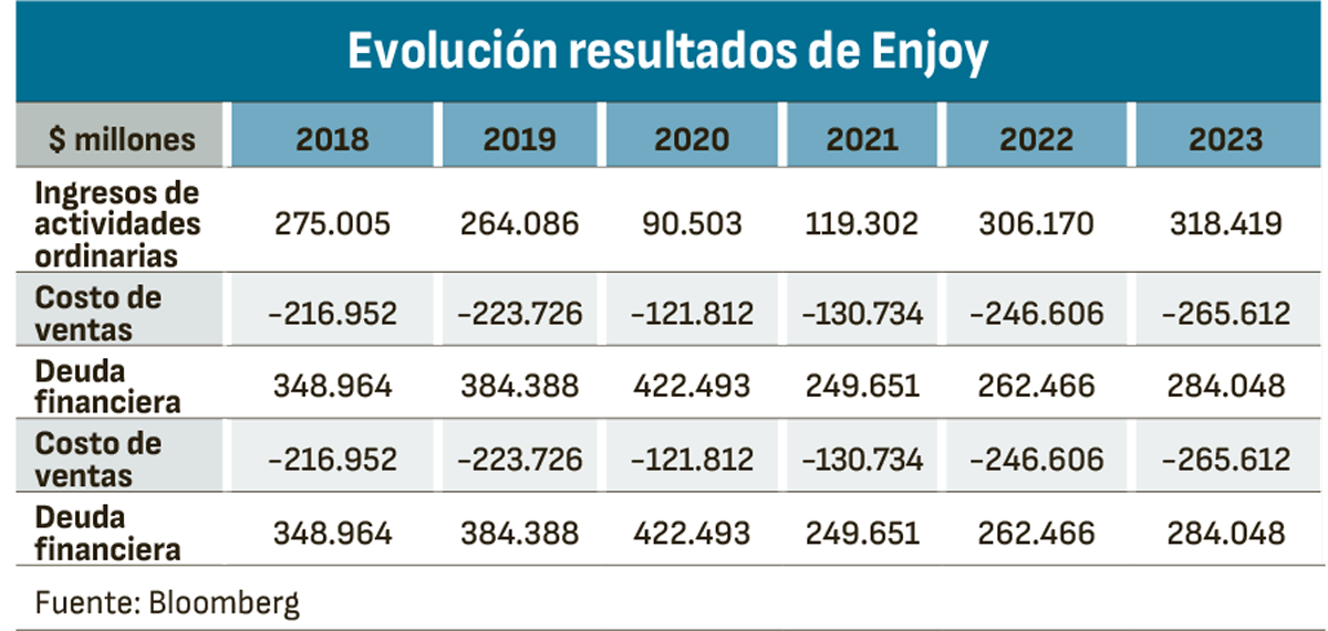 La acusación en materia de libre competencia se produce en un momento financiero complejo para Enjoy, que ya dura más de seis años. La compañía reporta una última línea negativa desde 2018 y, hasta cierre de 2023, acumula pérdidas por 420.316 millones de dólares.