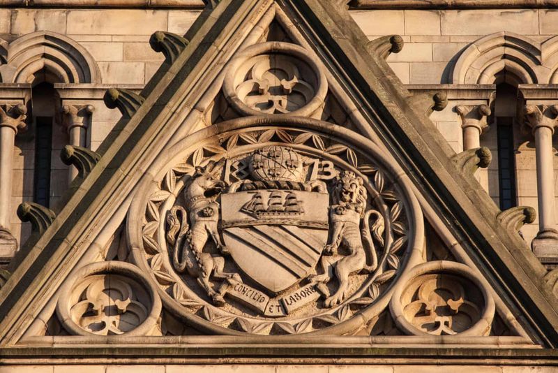 Escudo de armas de Manchester en un edificio de la ciudad. Foto: Andrew Barker / Alamy / The Guardian.