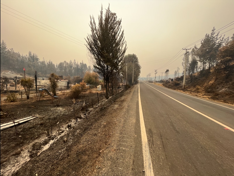 En esta ruta que une Santa Juana con Colico se produjo el fatal accidente que le costó la vida a la voluntaria Yesenia Muñoz. Las llamas arrasaron con todo el viernes 3 de febrero.