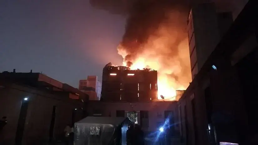 Fuego fuera de control en el Cercado de Lima. Más de 50 unidades del departamento de bomberos han venido a asistir a la emergencia, declarado ayer, el lunes, en una propiedad de Jirón Junín, en el área de Barrios de Altos.
