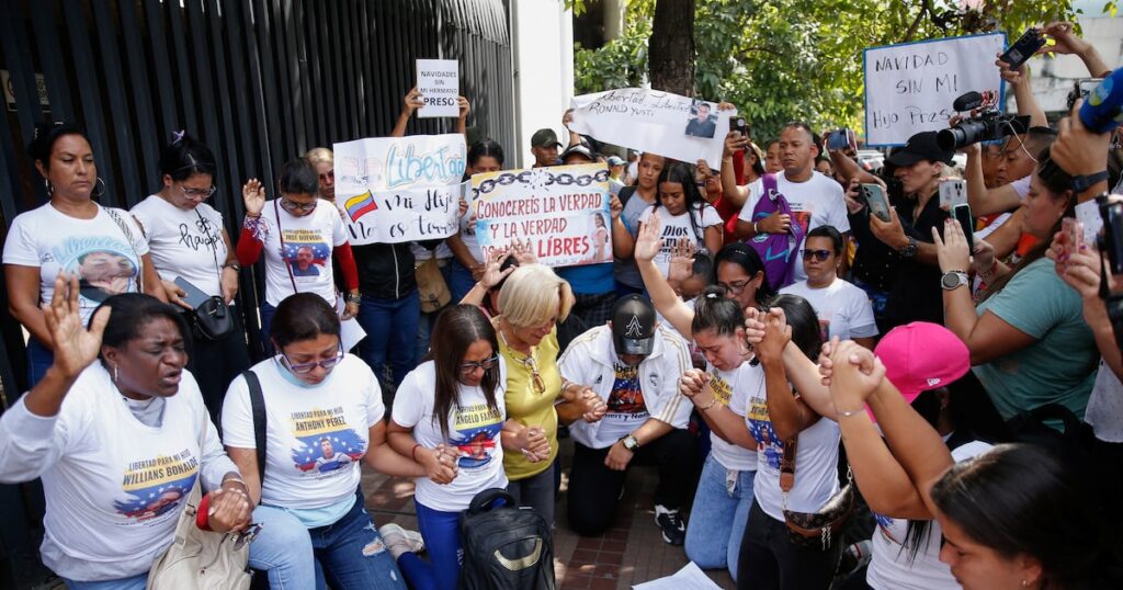 “Esperamos que esta medida se tome rápidamente y que podamos vivir una Navidad sin nuestros hijos tras las rejas. Le imploramos que actúe con compasión y justicia, “Escuchen nuestras súplicas y permitan que estos jóvenes regresen a sus hogares”, dijo a la prensa Dionexys García, familiar de uno de los presos por participar en las protestas contra la reelección de Maduro en un proceso electoral irregular, que ha sido condenado. . por la oposición y la comunidad internacional.