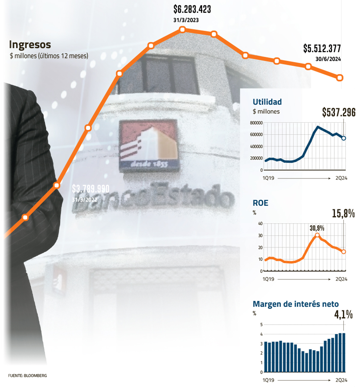 Respecto al desempeño de este año, BancoEstado reportó, al cierre del tercer trimestre, una disminución de 16,1% en su utilidad respecto al mismo período de 2023, explicado principalmente por mayores gastos operacionales, además de un menor resultado neto por intereses y reajustes. Mientras tanto, la rentabilidad sobre el patrimonio promedio cayó 5,4 puntos porcentuales, registrando un 15,32%.