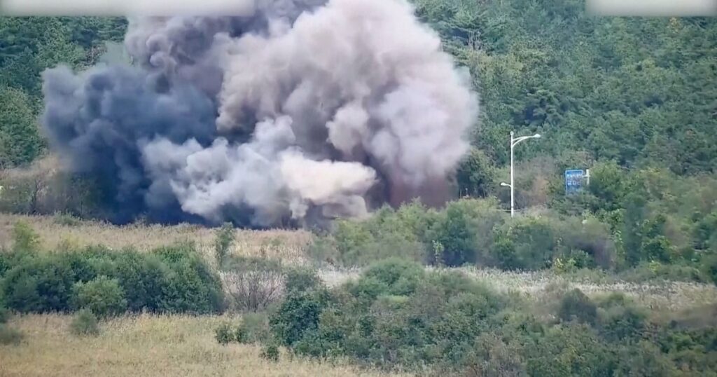 Tras la destrucción de las carreteras intercoreanas, las fuerzas de seguridad surcoreanas han advertido que Corea del Norte también está dDesplegando “equipamiento pesado” en la frontera ‘de facto’ entre ambos países, aunque han descartado que se hayan producido bajas o heridos entre los militares surcoreanos a causa de las explosiones de esta mañana.