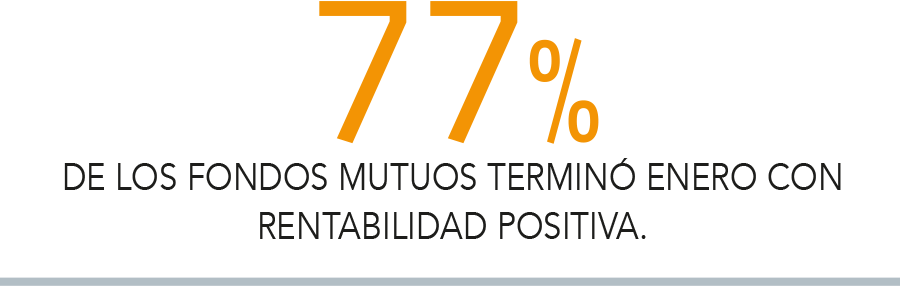 Según datos de DVA Capital, disponibles en el comparador DF.cl, los fondos mutuos se destacaron en el primer mes del año como los instrumentos con mejores retornos, seguidos de los fondos de inversión tradicionales. En el caso del primer grupo, el 77% finalizó el mes con rentabilidades positivas, mientras que en el segundo la cifra descendió al 34%, con la mayoría de los fondos en territorio negativo.