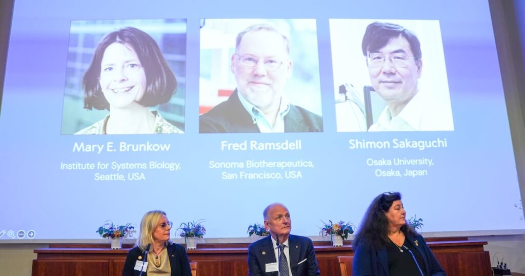 Los ganadores, Mary E. Brunkow, nacido en 1961, Fred Ramsdell, de 64 años, y Shimon Sakaguchi, de 74 años, “identificaron a los guardianes del sistema inmune, las células T reguladoras, que evitan que las células inmunes atacen nuestro propio cuerpo”, agregó.