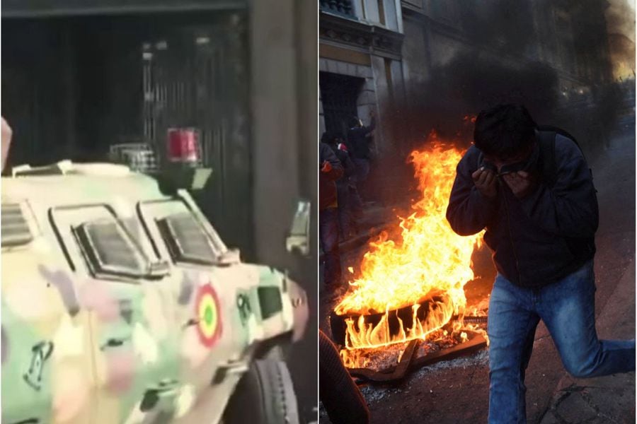 Mientras tanto, en la Plaza Murillo, un numeroso grupo de manifestantes, motivados por el mensaje presidencial, salieron a las calles a protestar por la democracia, y los militares respondieron con gases lacrimógenos.