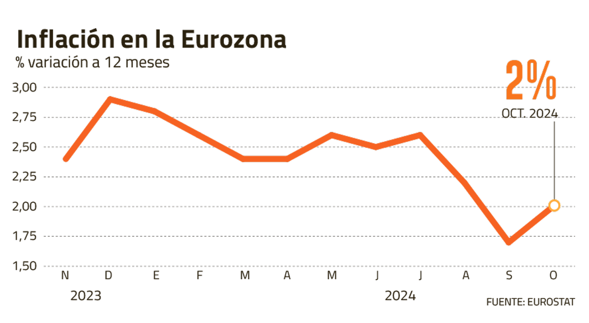 Después de la caída de la inflación anual al 1,7%, por debajo de la meta del 2%, en septiembre, la tasa subió en octubre (al 2%). Los analistas esperan un nuevo aumento consecutivo, que llevará la inflación anual al 2,4% y la inflación subyacente hasta el 3%.