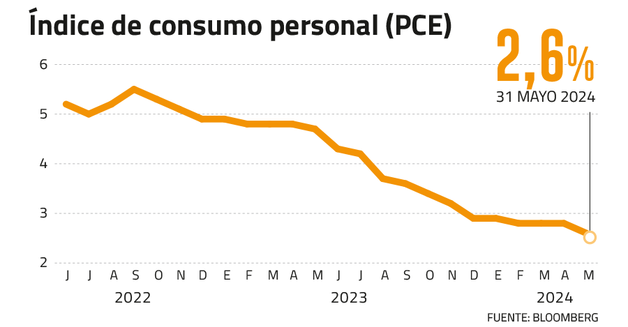 - Este viernes, en Estados Unidos, se publicó el índice de Gasto de Consumo Personal (PCE) de mayo, el cual se ubicó en línea con las expectativas del mercado, tanto en su variación mensual (0,1%), como en términos anuales (2,6%). Esta lectura fue el dato más bajo en los últimos 3 años, lo cual son buenas noticias para el mercado en cuanto a sus expectativas de inflación para los próximos meses. El índice S&P500 y NASDAQ reaccionaron de forma moderada a la noticia, al igual que los instrumentos de renta fija, como los bonos del tesoro a 10 años (4,26%) y a 2 años (4,67%).