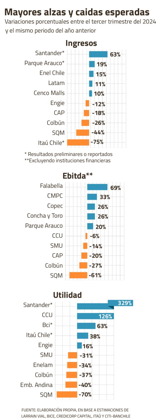 Entre las industrias con mayores expectativas destacan las instituciones financieras, los centros comerciales y las empresas de celulosa y papel. Por el contrario, SQM volverá a impactar negativamente, mientras que en el sector eléctrico Colbún registrará caídas considerables luego de enfrentar una base comparativa alta.