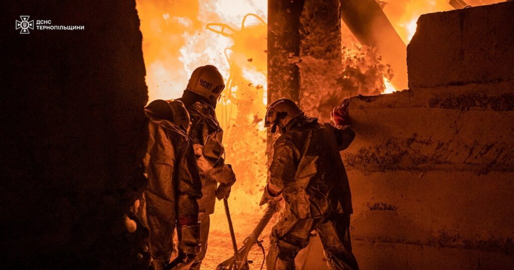 “Anoche Rusia atacó a Ucrania y lanzó un número récord de drones contra nuestro pueblo, 188″dijo el presidente ucraniano a través de sus redes sociales, compartiendo imágenes de bomberos trabajando para apagar los incendios provocados por los proyectiles en ciudades como, por ejemplo, Ternopil.